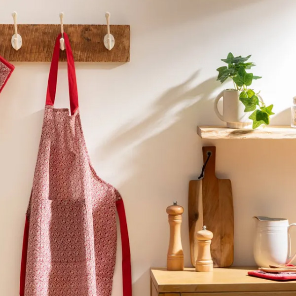 Atmosphera kuhinjska kecelja od pamuka, dimenzija 60×80 cm, štiti odeću od mrlja i prljavštine tokom kuvanja. Ima vezice za vezivanje oko vrata i struka