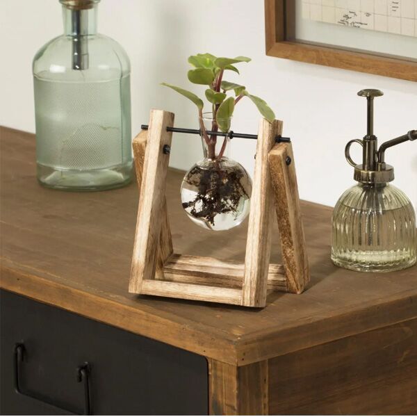 Atmosphera vaza – Staklo/drvo x1, H16 cm, moderna vaza za svaki prostor.