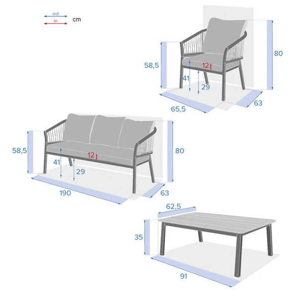 - Sastoji se od troseda, dve fotelje i klupskog stola sa lakiranom drvenom pločom sertifikovanom FSC® iz odgovorno upravljanih šuma.