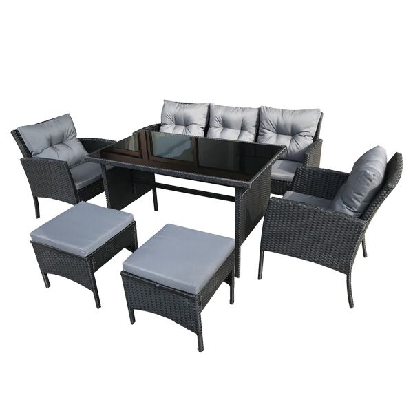 Baštenski set ratan sto + 2 stolice + 2 pufa + sofa crni (ABI7541)