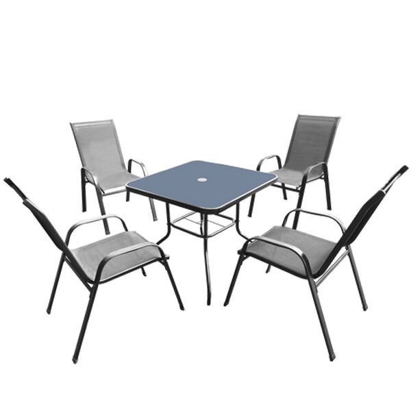 BAŠTENSKA GARNITURA (4 stolice + kvadratni sto) u sivoj boji.