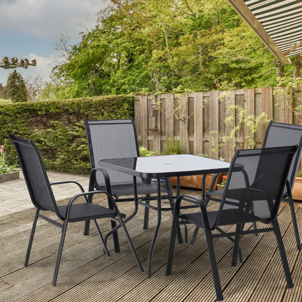 BAŠTENSKA GARNITURA (4 stolice + kvadratni sto) crna.