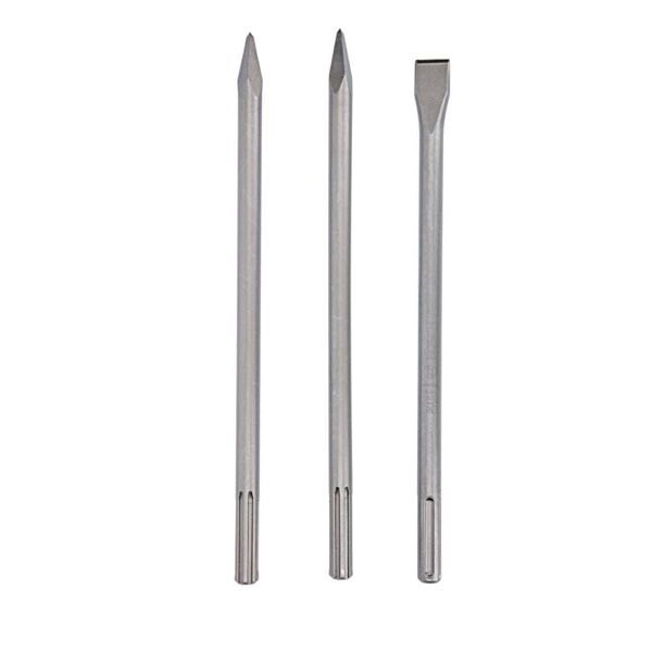 Sadržaj kompleta: 1 špicasto dleto od 250 mm (dug radni vek), SDS plus 1 dleto za pločice od 260 mm (samooštreće), SDS plus 1 pljosnato dleto od 250 mm (dug radni vek), SDS plus