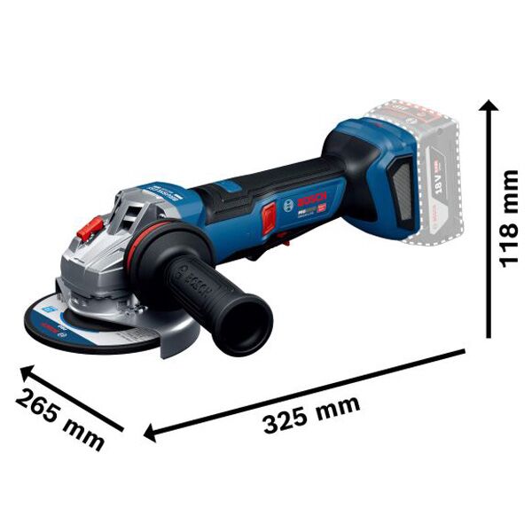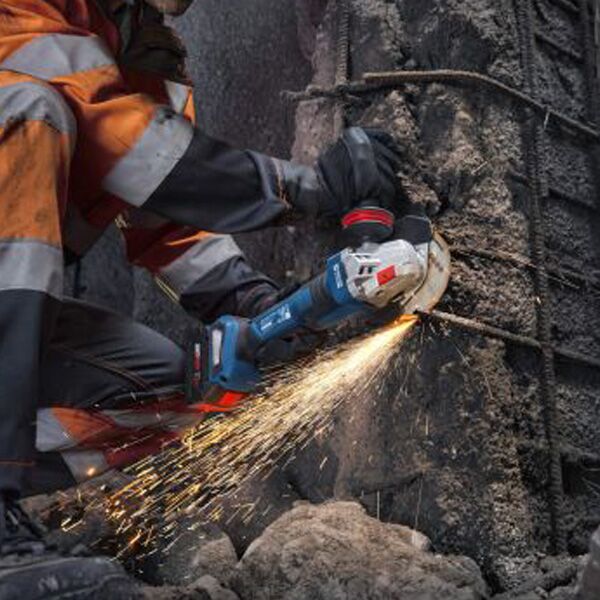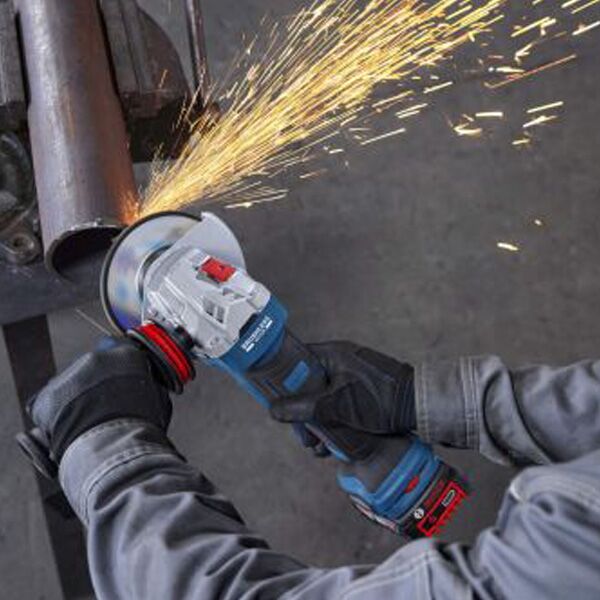 Akumulatorska ugaona brusilica GWS 18V-11PS sa funkcijama KickBack Control, Intelligent Brake System pruža zaštitu odnponovnog pokretanja kao i praktičan paddle prekidač.