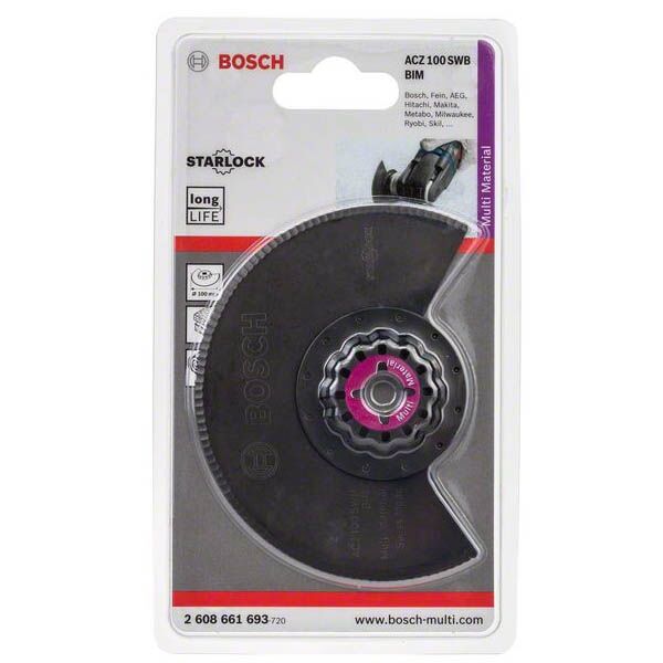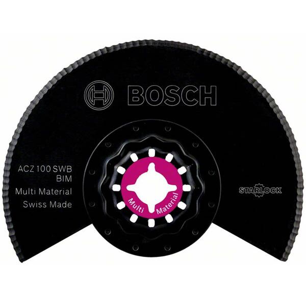 ACZ 100 SWB. Starlock BIM segmentni talasasto brušeni nož. Skraćivanje štrčećeg izolacionog materijala u ravni sa površinom, naročito stiropora. Krojenje izolacionih ploča (npr. Flumroc podnih ploča / ploča sa zvučnom izolacijom). Sečenje mekih materijala (npr. kartona, tepiha, gume, kože…). Za sve Starlock (Bosch: GOP 12V-28 Professional; PMF 220 CE; PMF 250 CES), StarlockPlus (Bosch: GOP 30-28; GOP 40-30; GOP 18V-28 Professional; PMF 350 CES – Fein: AFMT 12 SL; AFMT 12 QSL; AFMM 18 QSL; FMT 250 SL; FMT 250 QSL; FMM 350 QSL) i StarlockMax (Bosch: GOP 55-36 Professional – Fein: AFSC 18 QSL; AFSC 18 QCSL; FSC 500 QSL) alate. Bosch OIS GOP i PMF alati; Fein Multimaster i Multitalent; AEG; Einhell; Hitachi; Makita; Metabo; Milwaukee; Ryobi; Skil itd….