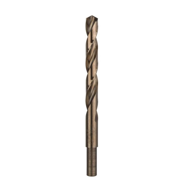 Spiralna burgija od legiranog brzoreznog čelika velike snage po normi DIN 338, sadržaj kobalta 5%. Spiralna burgija sa desnim sečenjem tip N, vrh burgije 135°, ukršteno brušenje po normi DIN 1412 C, tolerancija prečnika h 8. Spiralna burgija brušena od punog materijala sa izvrsnim kvalitetom površine po posebnoj fabričkoj normi. Prihvat odgovara prečniku burgije, boja burgije: bronza. Sa dve oštrice, cilindrične, dve spirale. Za legirani i nelegirani čelik do zatezne čvrstoće od 1.000 N/mm², nerđajući čelik V2A/V4A, sivi liv, čelični liv, čelik otporan na kiseline i vrućinu. Precizna burgija sa izuzetnom otpornošću na toplotu i trošenje. Za primenu u stalku za bušenje ili u stubnoj bušilici.