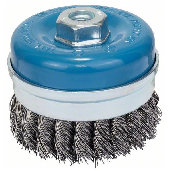 | Tekst proizvoda, AC siva | Lončasta četka – pletena žica Prikladna za teške radove čišćenja na metalnim površinama srednje do velike veličine, na primer za uklanjanje jake rđe ili zaštitne obloge donjeg dna vozila, skidanje boje ili laka. Za ugaone brusilice sa navojem M 10 ili M 14 Gewinde i za GGS 6 S Professional |