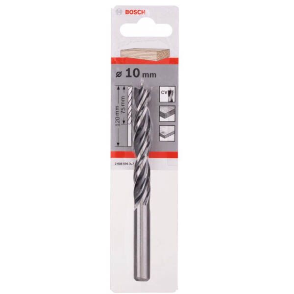 Pogodna za tvrdo i meko drvo. Burgija sa vrhom za centriranje i bočnim sekačem. Boja burgije: crna, sa brušenom ivicom. Dve spirale. Sve spiralne burgije za drvo proizvedene su po strogoj Bosch fabričkoj normi. Ekstremno oštri alati za bušenje za precizne otvore bez kidanja materijala. Sa CBN postupkom brušenja i brusnom pločom od kubno-kristalnog bor-nitrida precizno brušeno u potpuno kaljenom materijalu. Standardna spiralna burgija za drvo za brzo bušenje do prečnika od Ø 30 mm (čak i sa akumulatorskom bušilicom).