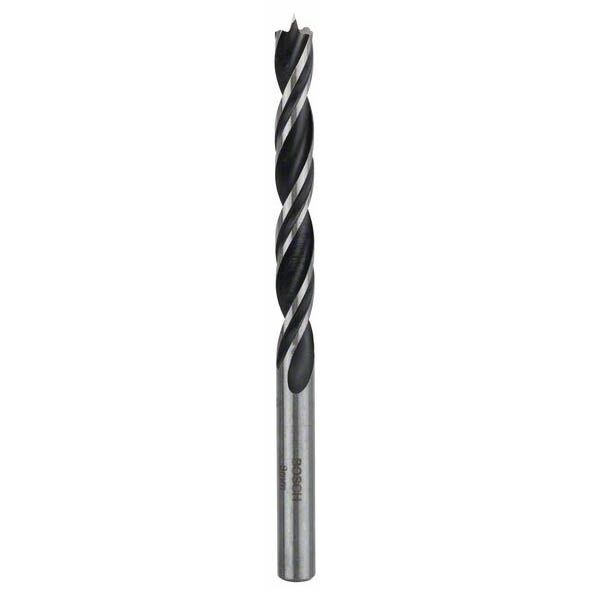 Pogodna za tvrdo i meko drvo. Burgija sa vrhom za centriranje i bočnim sekačem. Boja burgije: crna, sa brušenom ivicom. Dve spirale. Sve spiralne burgije za drvo proizvedene su po strogoj Bosch fabričkoj normi. Ekstremno oštri alati za bušenje za precizne otvore bez kidanja materijala. Sa CBN postupkom brušenja i brusnom pločom od kubno-kristalnog bor-nitrida precizno brušeno u potpuno kaljenom materijalu. Standardna spiralna burgija za drvo za brzo bušenje do prečnika od Ø 30 mm (čak i sa akumulatorskom bušilicom).