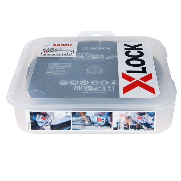 - X-LOCK sistem bez ključa za brzo i lako menjanje ploča; pogodan za korišćenje sa svim ugaonim brusilicama