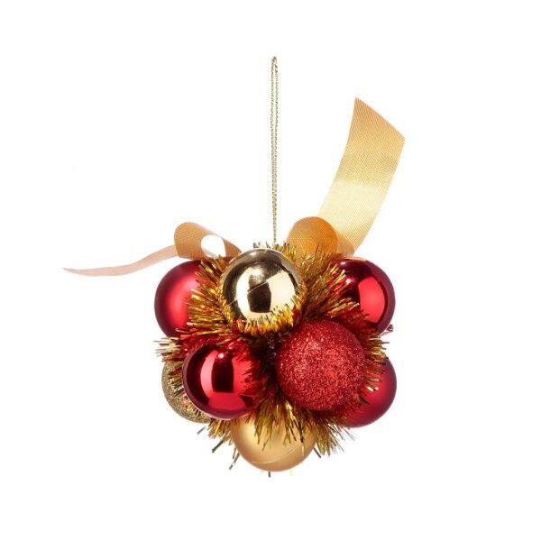 Božićni dekorativni cvet sa 11 loptica, 3 cm, crveno zlatna (694518A)