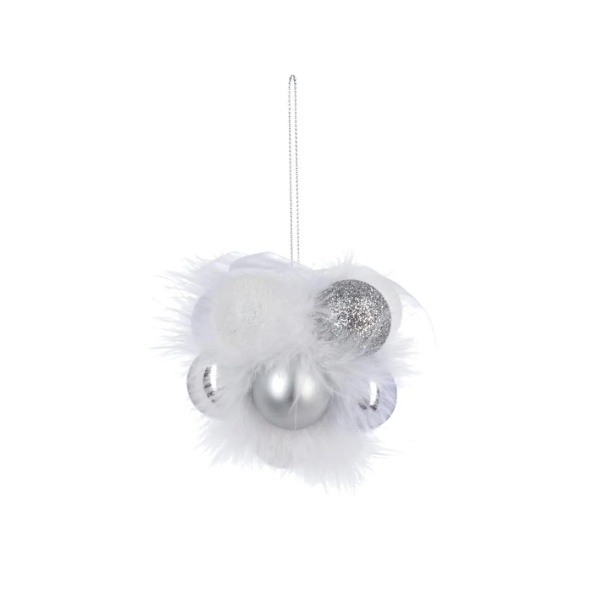 Božićni dekorativni cvet sa 11 loptica, 3 cm, srebrno bela (694518S)