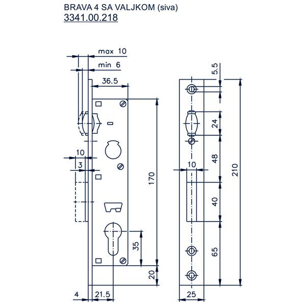 Brava 4 sa valjkom 21.5(36.5×170)25 za metalna vrata – siva