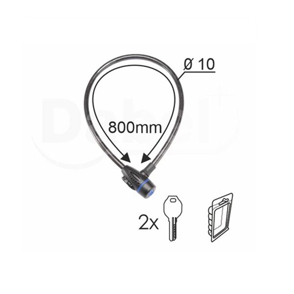 Brava za bicikl sa ključem spiralna BBK1 crna FU10x800mm 2K OPD (0709001)