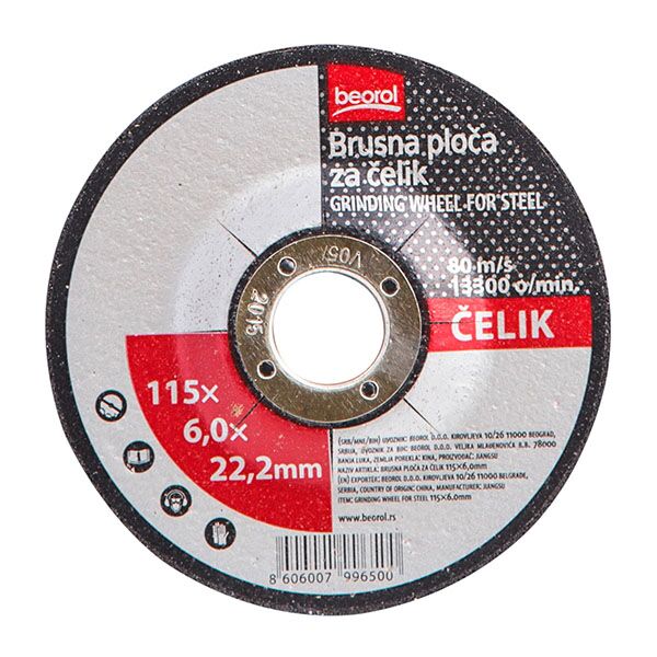Brusna ploča za metal 115×6 je abrazivna brusna ploča za elemente napravljene od crnog metala. Nije namenjena za INOX. Pravilan izbor abrazivnih čestica i vezivnog materijala omogućava brz i olakšan rad. Radi sigurnosti majstora, unutar ploče se nalazi armaturna mreža. Metalna prirubnica obezbeđuje čvršću i sigurniju vezu sa ugaonom brusilicom.