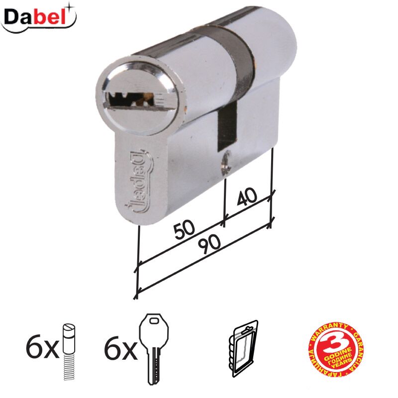 DABEL- Cilindar kodirani CL2040- Materijal: Mesing- Boja: Hromirana.Upotreba: pvc.