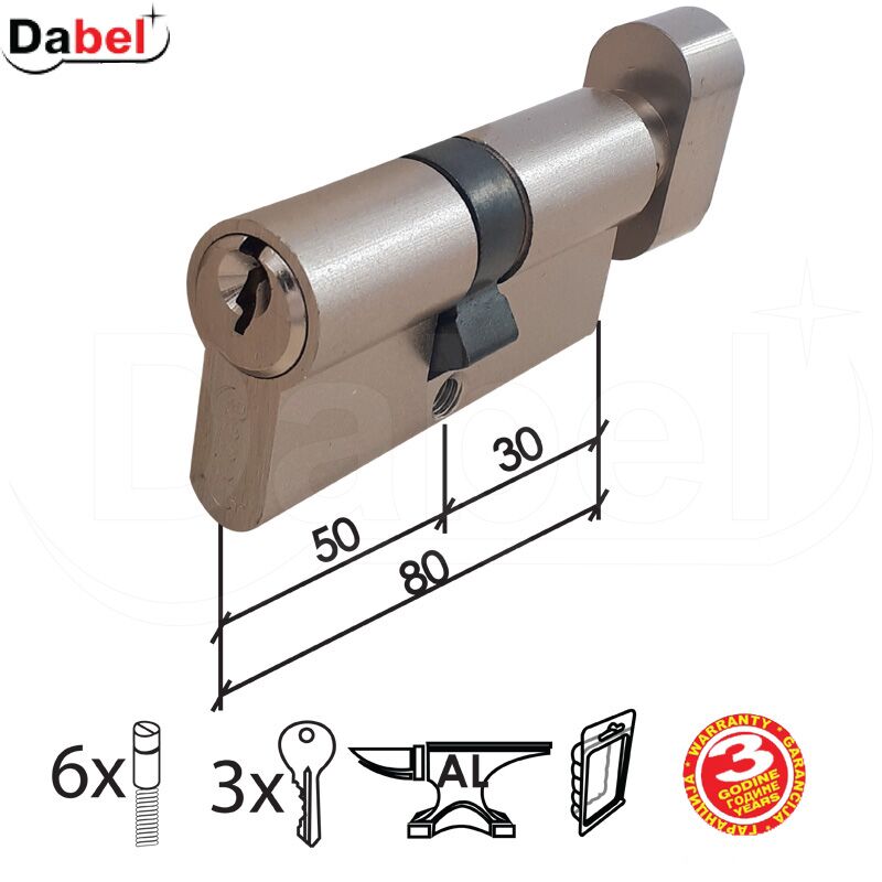 DABEL- Cilindar sa dugmetom CL2036K- Materijal: Mesing- Boja: Niklovano.Upotreba: aluminijum.