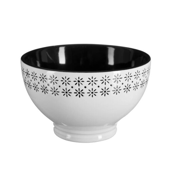 Moderna bela činija sa ukrasnim detaljima idealna za posluživanje hrane.
