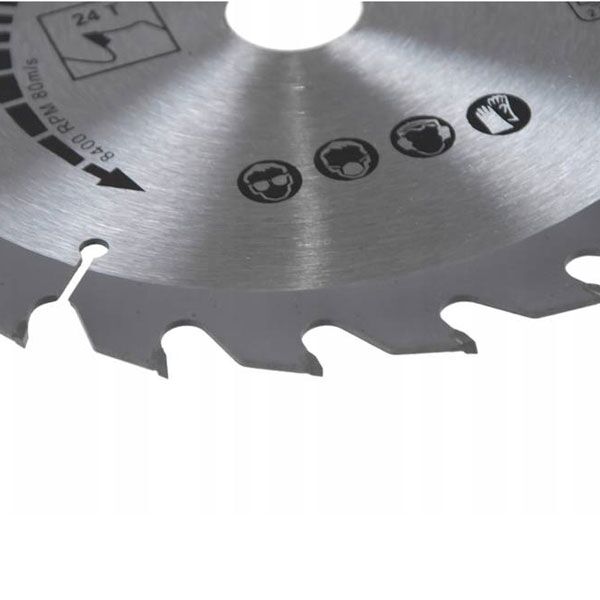 List kružne testere je izrađen od visokokvalitetnog čelika, što ga čini otpornijim na deformacije. Opremljen je sa 24 naizmenična kosa rezna zuba sa vrhom TCT volframovog karbida, što garantuje visoku trajnost i visoke rezultate sečenja. Volframov karbid osigurava dug radni vek i omogućava višestruko oštrenje. List testere ima posebne proreze koji hlade sečiva.