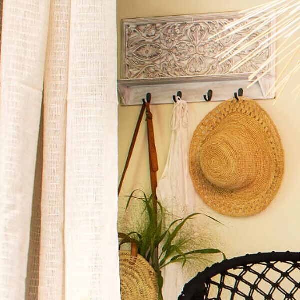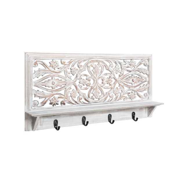 Čiviluk sa policom, dimenzije 60x22cm, sa 4 kukice, funkcionalan za odlaganje garderobe i sitnica.