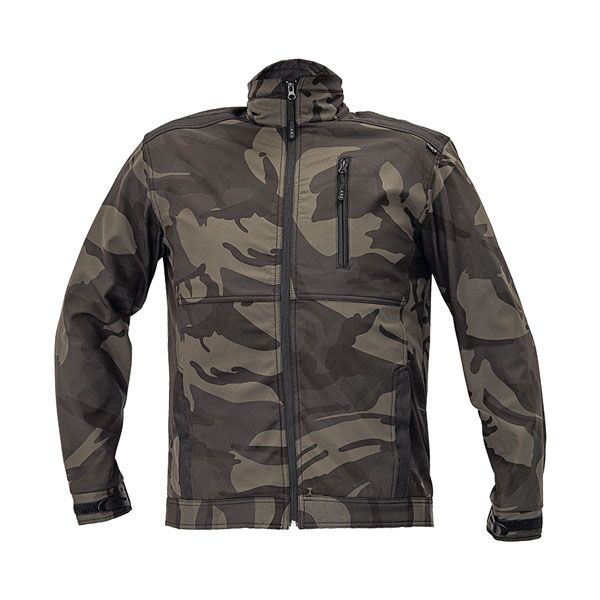 Muška softshell maskirna jakna, modernog dizajna, proizvedena od 100% poliestera sa TPU slojem, 300g/m2. Poseduje čvrstu kragnu i ojačanja na ramenima od OXFORD 600D materijala. Dva prednja džepa za ruke i jedan džep na grudima, svi se kopčaju patentnim zatvaračem. Manžetne rukava se kopčaju i podešavaju čičak trakom. Jakna je paropropusna i vodoodbojna, što je čini prijatnom za nošenje kako u suvim, tako i u vlažnim uslovima.