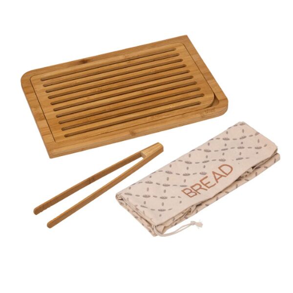 Daska za sečenje hleba u setu sa hvataljkom i vrećicom simpatičnog dizajna za čuvanje hleba.