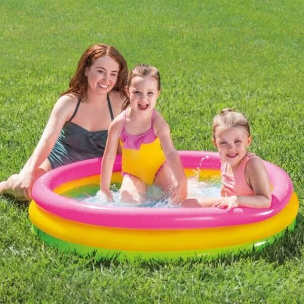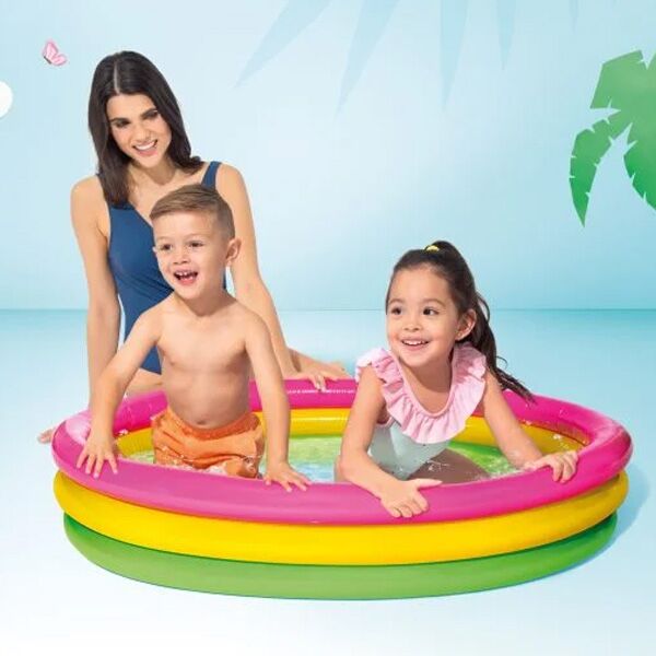 Intex bazen za decu sa 3 raznobojna prstena i mekanom dnom.