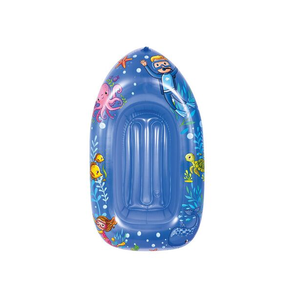 Što ovaj čamac posebno izdvaja je njegovo naduvavano dno koje pruža dodatnu udobnost tokom korišćenja. Deca mogu sedeti ili ležati u čamcu bez osećaja hladnoće ili neudobnosti, što produžava vreme koje provode u vodi. Čamac se lako naduva i spremi, što ga čini praktičnim izborom za izlete na plažu, jezero ili čak za igru u bašti sa malim bazenom.