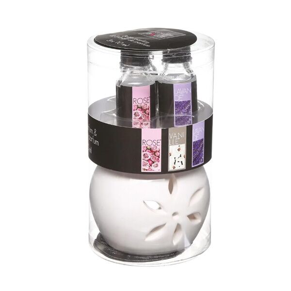 Difuzer – 8.5×7.5×8 cm, ulje/staklo, bela boja, stvoren da stvori mirnu atmosferu.
