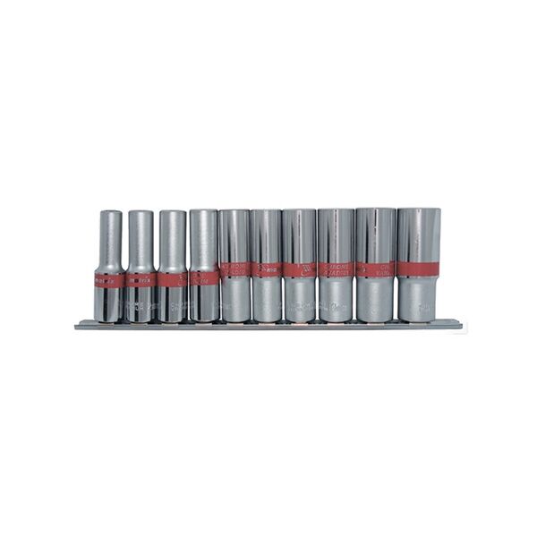 Komplet uključuje 6-zidne produžne umetke na kvadratnoj ploči od 1/2 “sa sledećim dimenzijama: 10 mm, 12 mm, 13 mm, 14 mm, 15 mm, 16 mm, 17 mm, 19 mm, 21 mm i 22 mm. Materijal – CrV.