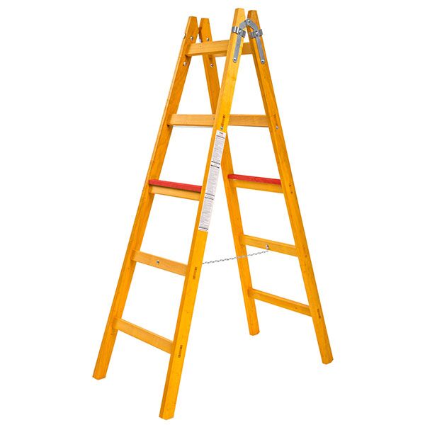 Drvene merdevine 2×5 posebno namenjene za molerske radove. Napravljene su od kvalitetnog i laganog drveta (gazišta – lipa, stranice – topola) i ofarbane zaštitnom bojom koja štiti od vode i vlage čime im se omugućuje duži vek trajanja. Šarke i ojačanja su pocinkovana i napravljena od izuzetno jakog čelika. Merdevine poseduju dodatno ojačanje na trećem gazištu i kukicu za kačenje, sa strane. Merdevine su atestirane po svim važećim standardima.