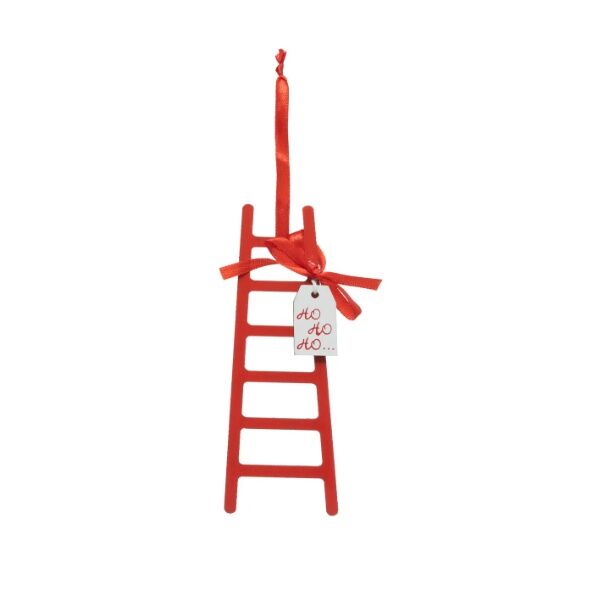 Dekorativne drvene merdevine “Ho Ho Ho” dimenzija 5×0.5×15 cm u crvenoj boji, za dodatak prazničnom duhu.