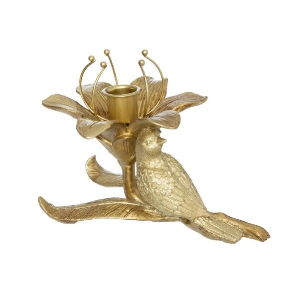 Držač za sveću cvet sa pticom 13×11.8×18 cm zlatna (199375)