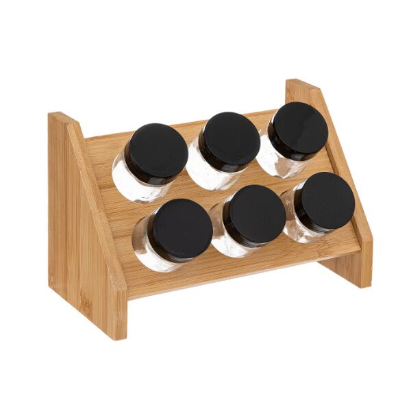 Set za začine koji se sastoji od drvenog držača I 6 teglice modernog dizajna se lako uklapa u svaku kuhinju.