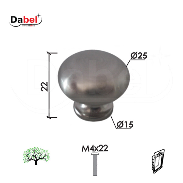 Dugme za nameštaj D320 B-NI FI25x22/FI15mm 2kom M4x22mm DBP1 (0205577)