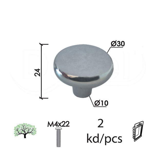 Dugme za nameštaj D61 HR FI30x24/FI10mm 2kom M4x22mm DBP1 (0205580)