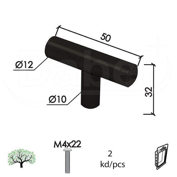 Dugme za nameštaj D90 crna 50X32X12/FI10 mm (2kom) M4X22MM DBP1 (0205553)