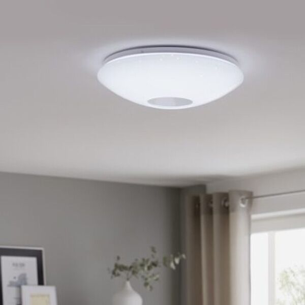 Plafonjerka Eglo Voltago 2 donosi moderan dizajn i praktične funkcije u jedan proizvod. Izrađena je od čelika u beloj boji sa difuzorom od plastike sa kristalnim efektom, što daje elegantan izgled. Integrisana LED snage 20W pruža svetlosni tok od 2500 lm i mogućnost podešavanja boje svetla od toplog do hladnog belog (2700-6500K). Zahvaljujući daljinskom upravljaču, lako se reguliše jačina osvetljenja (10-100%) i bira željena atmosfera, dok memorijska funkcija pamti poslednje podešavanje. Sa IP20 zaštitom i dugim vekom trajanja, idealna je za dnevne sobe, trpezarije i spavaće sobe.