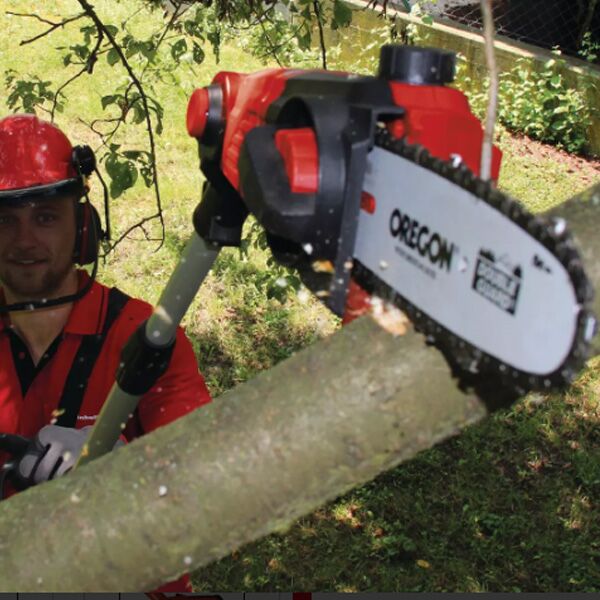 GE-LC 18 Li T je akumulatorska teleskopska lančana testera je moćan uređaj koji omogućuje rezanje ogranaka bez napora i nezavisno od napajanja iz zemlje. Na taj način, metalni zupčanik obezbeđuje dugo trajanje, a sečivo OREGON kvaliteta i OREGON-lanac brinu o dobrim rezultatima rezanja. Teleskopska ručka, beskonačno podesiva od 880 mm do 1820 mm, može se podesiti na odgovarajuću radnu visinu. Dodatna, takođe beskonačno podesiva dodatna ručka prilagođena je svakom korisniku pomoću praktične brze blokade. Okretni vrh od 90 ° se brine za horizontalne rezove bez napora. Da bi se izvršila čista i precizno teška rezanja, glava motora može biti nagnuta u sedam pozicija, a glavna ručka u 4 pozicije, i time se može prilagoditi svakoj radnoj situaciji. Stezna kočnica sprečava klizanje tokom procesa rezanja. Automatsko podmazivanje lanca preko rezervoara za ulje snabdeva OREGON-lanac potrebnim mazivom. Kada je potrebno, zategnutost se može promeniti bez alata pomoću. Vijak za blokiranje lanca pouzdano sprečava neželjeno proklizavanje lanca od noža. Baterija i punjač nisu uključeni u isporuku.