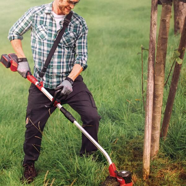 Einhell GE-CT 36/30 Li E – solo bežični trimer za travu je testirani pomoćnik u domenu urešaja za hobi baštovanstvo. Bez obzira da li se režu ivice ili travnjak dovodi u određen oblik, moćni akumulatorski trimer za travu olakšava rad brzo zahvaljujući elektronskoj kontroli brzine. Član je porodice Power X-Change. Baterije se mogu koristiti u svim uređajima ove serije. 2 x18 V baterije su potrebne za upravljanje akumulatorskim trimerom za travu. Oblikovana duga aluminijumska ručka sprečava zamor pri radu. Odvojene osovine olakšavaju transport i smanjuju potreban prostor za skladištenje. Podesiva dodatna drška opremljena je blokadom za brzo otpuštanje. Linija se napaja automatskim sistemom i omogućuje širinu sečenja do 30 centimetara. Karakteristike opreme kao što su kaiš za nošenje, zidni nosač i mekani rukohvat omogućuju jednostavnu pomoć u bašti. Zaštita za cveće i ukrasno bilje uvek obezbeđuje neophodnu sigurnu udaljenost, čuvajući lepotu bašte. Baterije i punjač nisu uključeni u isporuku i dostupni su zasebno.