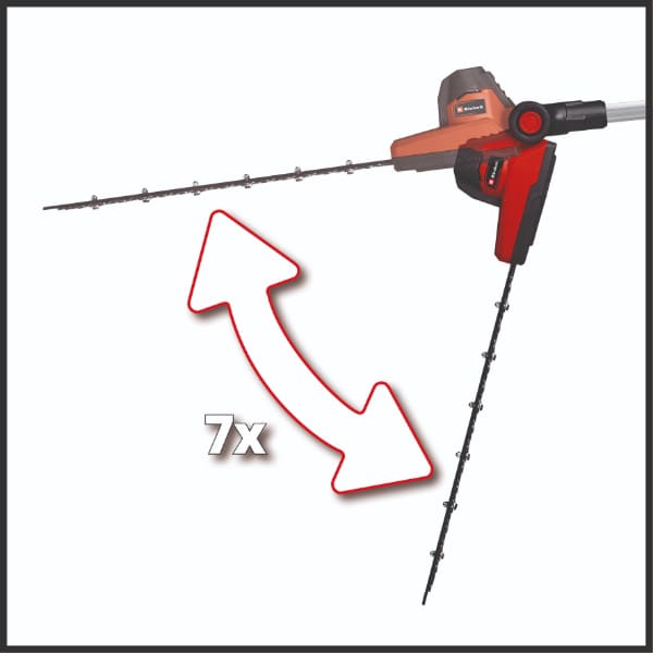 Einhell akumulatorske teleskopske makaze za živu ogradu su član fleksibilne Power X-Change porodice sa visokim performansama iz kompanije Einhell. Njihove visokokvalitetne punjive baterije sa litijum-jonskim ćelijama mogu se kombinovati sa svim uređajima sistema u okviru PXC porodice. Noževi na ovim teleskopskim makazama za živu ogradu napravljeni su od laserski sečenog i dijamantom brušenog čelika i dizajnirani su za maksimalnu dužinu rezanja od 410 mm sa do 1.400 rezova u minutu. Fleksibilnost duguju glavi motora sa 7 podešavanja nagiba i okretnoj glavnoj ručki. Postoji dodatna gumirana površina koja pruža čvrsto i bezbedno držanje, kao i pojas za nošenje koji takođe pomaže ergonomskom rukovanju. Robustan metalni zupčanik napravljen je za dug radni vek. Ove teleskopske makaze za živu ogradu dolaze sa produživom šipkom koja se može koristiti na višim živicama. Čvrsta zaštita rezača se isporučuje za bezbedno skladištenje i lak transport. Ovaj proizvod dolazi bez baterije i punjača; ovi artikli su dostupni posebno, na primer kao praktični starter set.