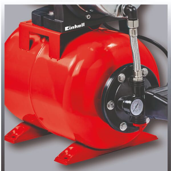 Kućni vodovod-hidropak Einhell GC-WW 1046 NN dolazi sa vodenom mlaznom pumpom sa prekidačem za uključivanje/isključivanje i INOKS kućištem pumpe od nerđajućeg čelika. Sa svojim motorom od 1.050 W, vodovod u domaćinstvima postiže brzinu isporuke do 4.600 litara vode na sat. Ovaj elektromotor ne zahteva održavanje i opremljen je termičkom zaštitom od preopterećenja. Posuda pod pritiskom od nerđajućeg čelika ima kapacitet od 20 l i integrisani merač pritiska. Voda se održava pod konstantnim pritiskom pomoću automatskog prekidača pritiska. Mehanička zaptivka od keramike i gume znači dug vek trajanja. Odvojeni vijak za punjenje vode olakšava pokretanje, isporučuje se vijak za ispuštanje vode za odvođenje preostale vode. Noga je pričvršćena pomoću otvora.