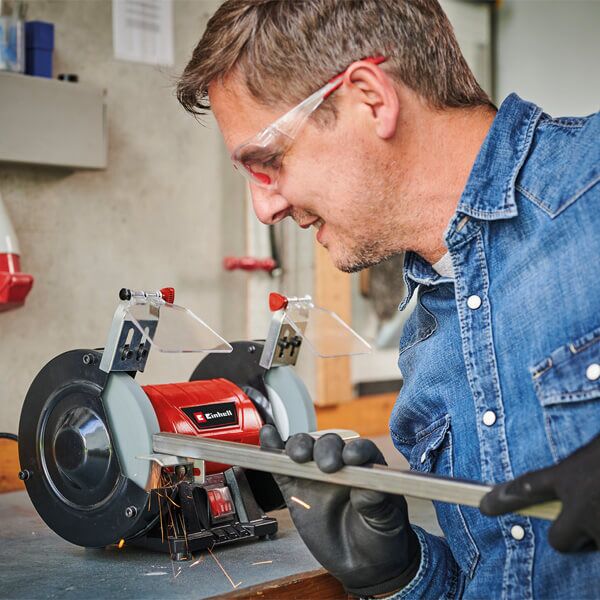 Einhell TC-BG 150 dvostruka stona brusilica je praktična mašina za brušenje sa širokom primenom. Dvostruka stona brusilica sa dva brusna točka koja pokreće po jedan motor je neophodan komad opreme u svakoj radionici. Dvostruka stona brusilica se može koristiti za oštrenje makaza, noževa, oštrica, sečiva, burgija i rezača, pa čak i dleta. Pored toga, dvostruka stona brusilica se takođe može koristiti za uklanjanje rđe i korice, kao i za brušenje i poliranje širokog spektra radnih predmeta od drveta, plastike i metala. Dvostruka stona brusilica je posebno pogodna za manje popravke i oštrenje noževa, ali se takođe može koristiti za jače popravke, podešavanje oblika i novo početno brušenje. Robusna kompaktna metalna konstrukcija obezbeđuje dugotrajnost brusilice. Veliki podesivi radni oslonci su od pomoći pri raznim primenama, dok osovina sa kugličnim ležajevima bez zazora omogućava postizanje preciznih rezultata. Iz sigurnosnih razloga, postoje prozori za zaštitu od varnica koji se mogu podesiti bez ikakvog alata, kao i zaštitne haube koje su bočno zatvorene. Četiri gumene stope upijaju vibracije i osiguravaju čvrst i bezbedan položaj tokom rada. Ovaj proizvod dolazi sa diskom za fino i za grubo brušenje (K36/K60).
