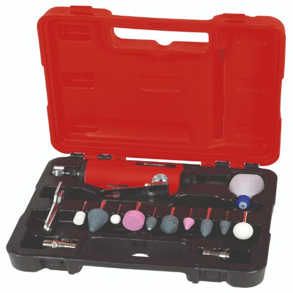 Einhell TC-PP 220 pneumatska brusilica sa visokim performansama je precizan alat za brušenje, poliranje, graviranje. Vrhunske performanse sa brzinom do 22.000 obr/min nudi brusilica pomoću creva sa unutrašnjim prečnikom od 9 mm ili više. Gumena ručka omogućava sigurnu upotrebu. Pneumatska brusilica je pogodna za rad sa jednom rukom. Ručica sigurnosnog okidača sprečava nenamerno pokretanje. Za širok spektar primene postoji 10 kamena za brušenje kao dodatak. Uz proizvod se nalaze: 1 mala boca sa uljem, 1 spojnica i 2 kukasta ključa. Isporučuje se u praktičnoj futroli za transport i skladištenje.