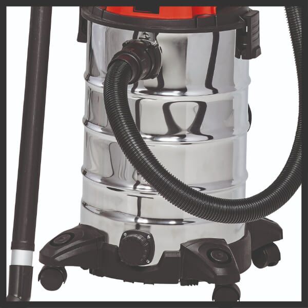 Usisivač za suvo i mokro usisavanje TC-VC 1930 SA je nezamjenjiv pomoćnik koji pruža dobru uslugu ambicioznom uradi sam entuzijasti na poslovima čišćenja u kući, radionici i garaži. Njen rezervoar od nerđajućeg čelika ima kapacitet od 30 litara za sakupljanje i prljavštine i tečnosti, sa ispusnim vijkom predviđenim za jednostavno i čisto ispuštanje usisane tečnosti. Takođe je obezbeđen praktičan priključak za izduvavanje.