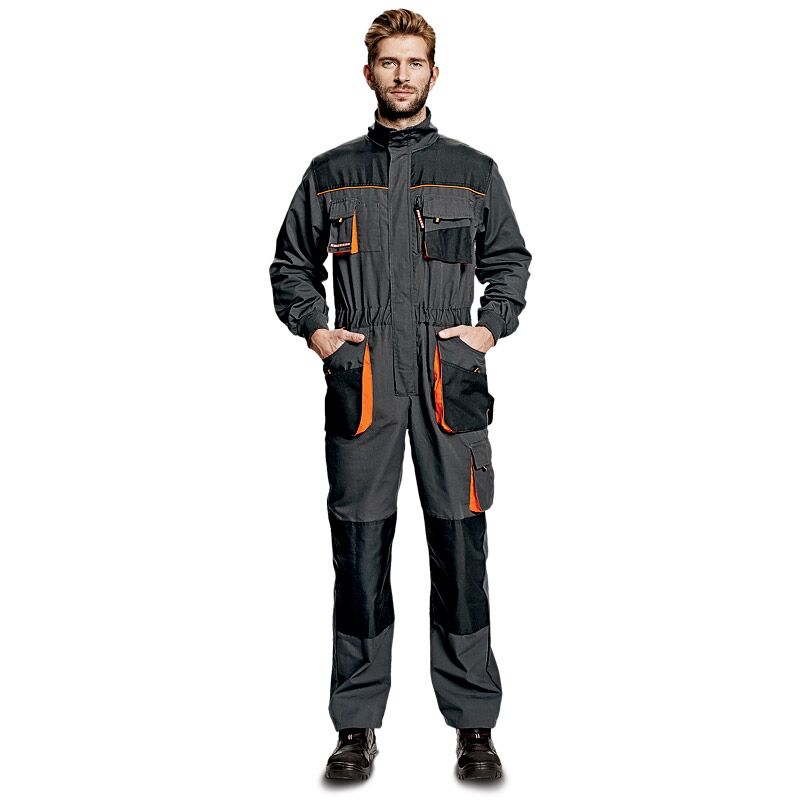 Radni kombinezon, praktičan dizajn sa dosta džepova, proizveden od 65% poliestera i 35% pamuka (270 g/m2), sa ojačanjima od 600D poliestera na mestima izloženim većem habanju (ramena, laktovi, kolena…), ima zip ispod pazuha za veći komfor i bolju ventilaciju i džepove za umetanje štitnika za kolena.