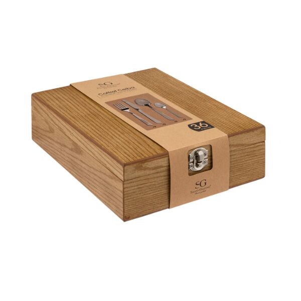 Set od 36 delova escajga u drvenoj kutiji od nerđajućeg čelika kvalitetan i funkcionalan.