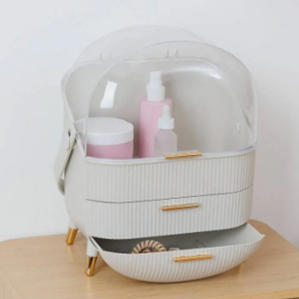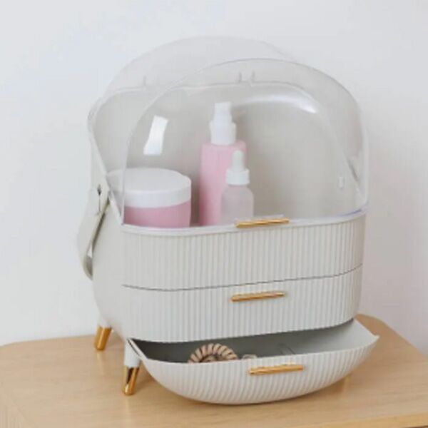Organizator u bež boji za različite namene u kupatilu, za šminku, lekove itd.