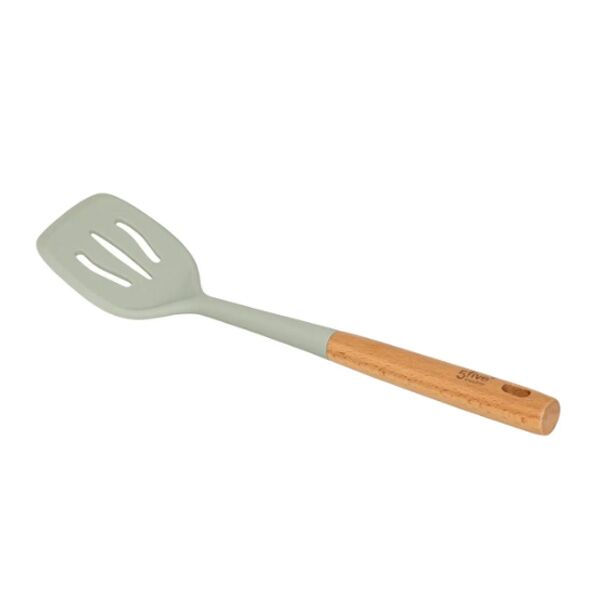 Silikonska špatula sa drvenom drškom i prorezima kao praktičan I moderan dodatak vašoj kuhinji.