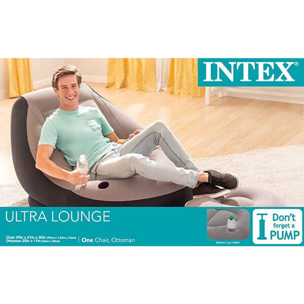 Udoban flokirani materijal, ugaoni naslon, otoman i ugrađeni držač za čaše čine ovo sedište vrhunskom udobnošću, bilo da ste na kampovanju ili kod kuće. Gledajte TV, čitajte knjigu ili odlutajte da odspavate – ovaj ultra salon će se naduvati i biti spreman za korišćenje za nekoliko minuta. Lako se čisti i kompaktno pakuje za skladištenje! Dodatna oprema: materijal za popravku, torba i kutija, uputstva na 12 jezika